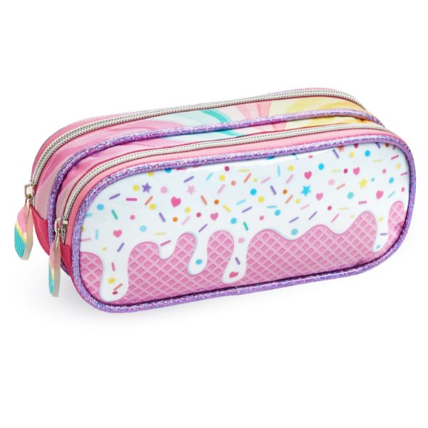 O Estojo Duplo do sorvete é um acessório encantador e prático que é perfeito para quem gosta de magia e beleza. Além de ter puxadores personalizados ele possui uma alta qualidade oque é ideal para o dia a dia da sua filha.