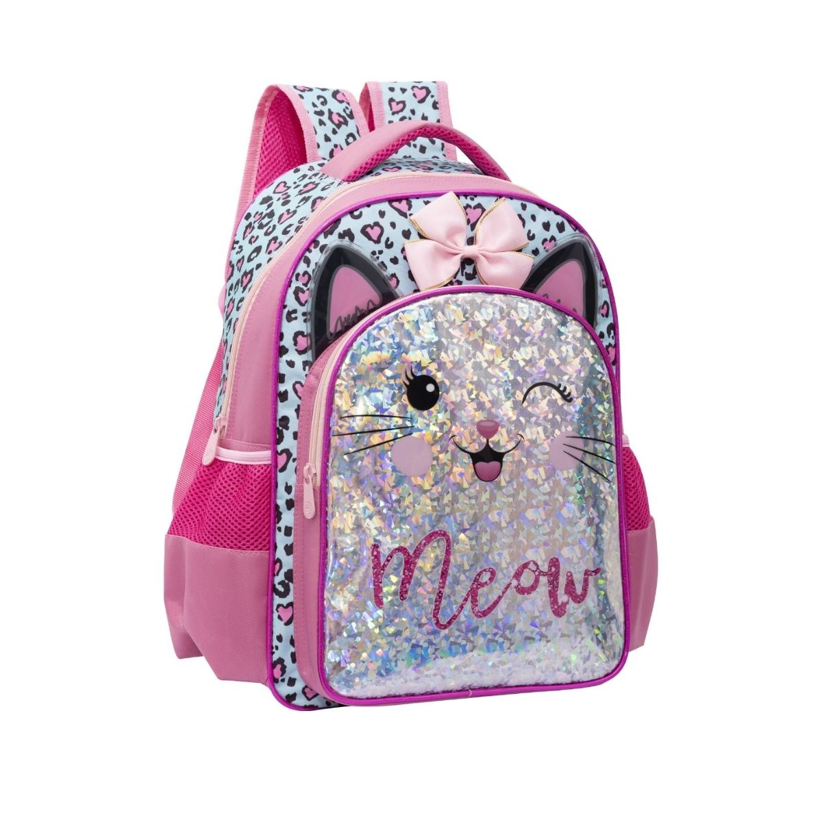 A Mochila de Costas Gatinho Metalizado, é perfeita para organizar cadernos, livros e outros materiais escolares. Sua filha vai adorar levar essa mochila para a escola, tornando-se o destaque entre os colegas. Além de prática e fácil de transportar ela proporciona conforto durante todo o trajeto. É o item ideal de funcionalidade e estilo, tornando-o essencial para qualquer criança que adore gatinhos e um toque de brilho em sua vida.