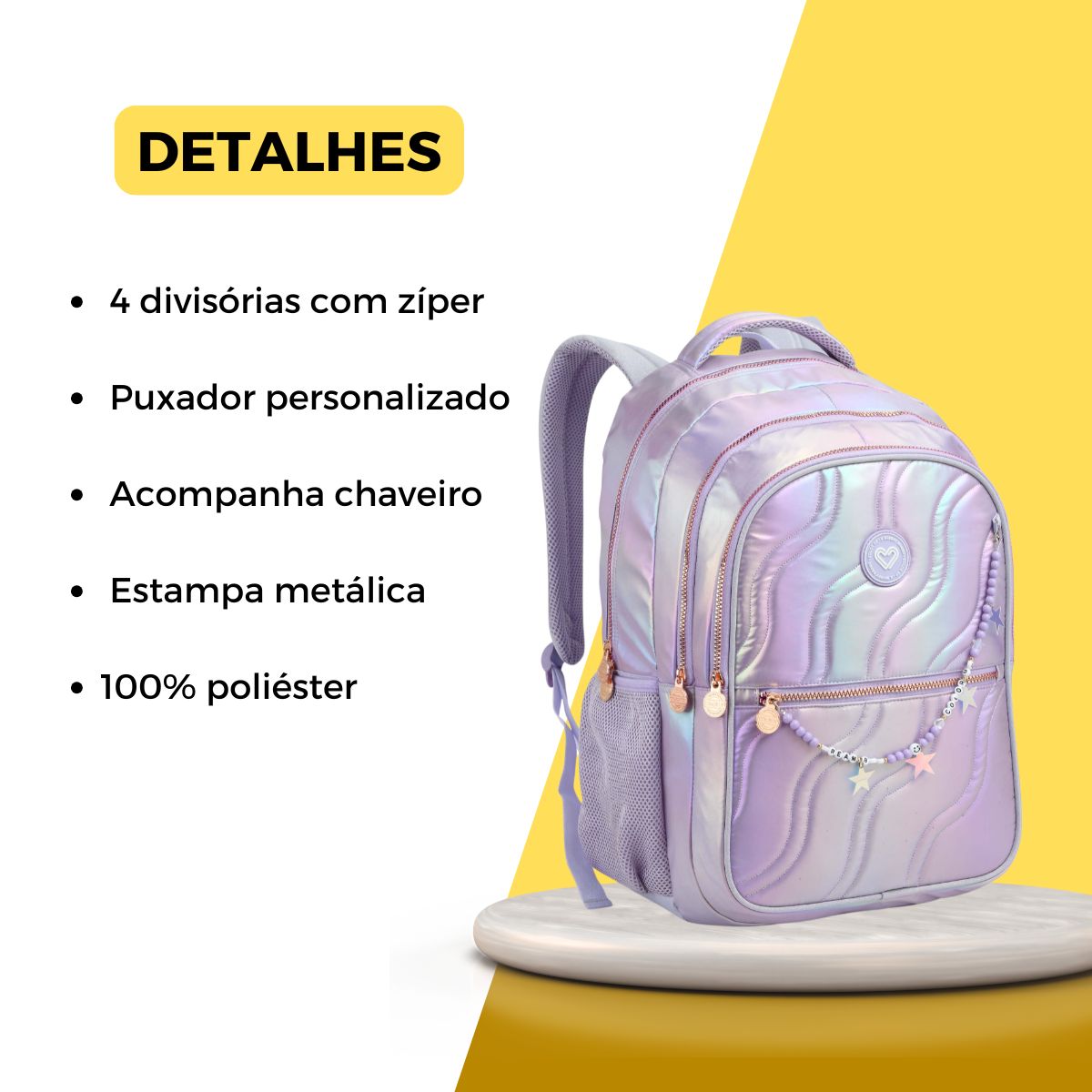 Sua filha vai adorar levar essa mochila para a escola, tornando-se o destaque entre os colegas. Além de prática e fácil de transportar ela proporciona conforto durante todo o trajeto. É o item ideal de funcionalidade e estilo, tornando-o essencial para qualquer um que adore estilo e moda.